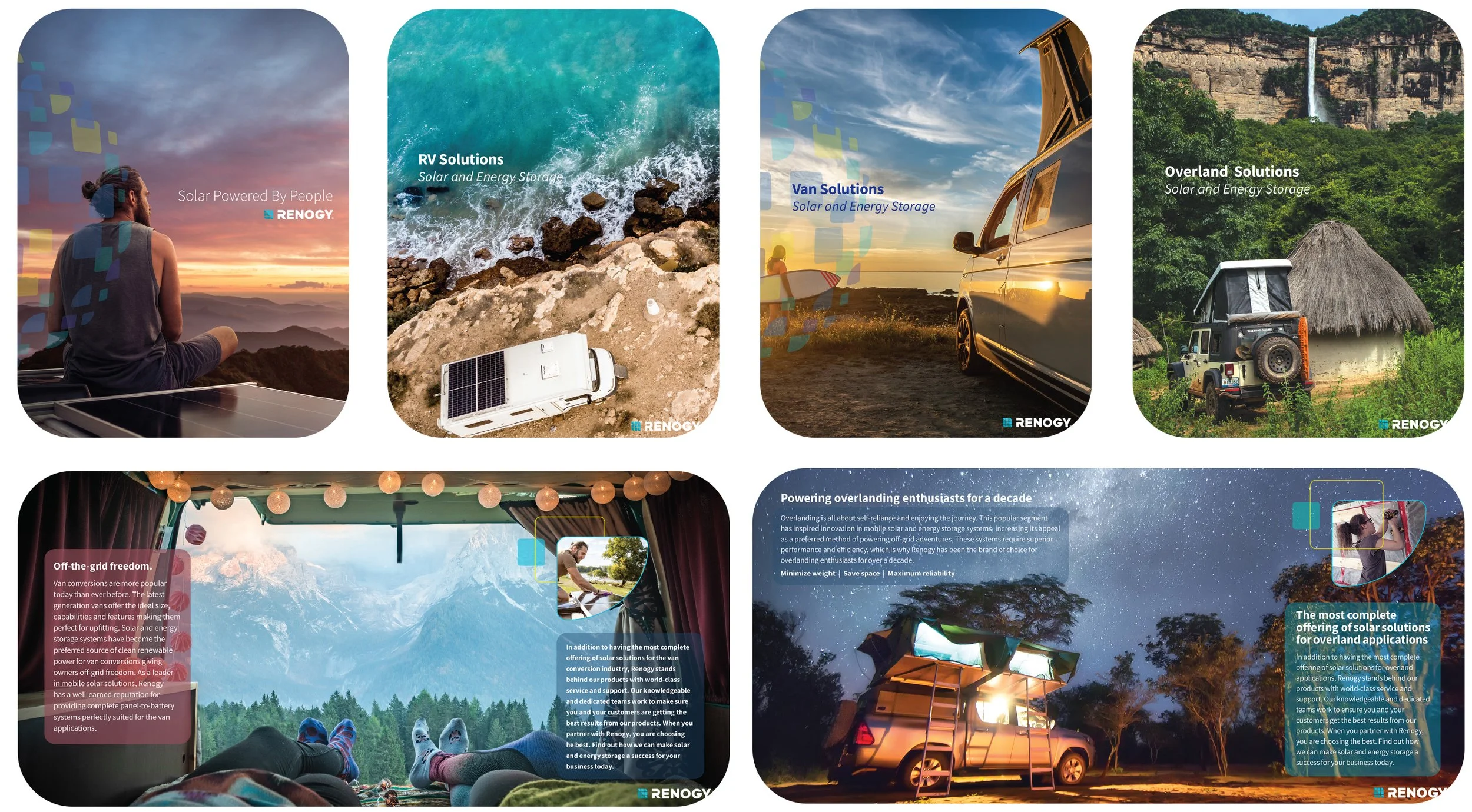 This 12-year-old off-grid solar company tasked us with launching their first integrated RV solar system, REGO. Our first task was to create a campaign idea called “REady to GO” that emphasized the plug and play nature of the REGO system and addressed one of the biggest impediments to uptake of DIY RV system projects: the installation time. Through an integrated approach that include PR and direct sell through their website we launched REGO with success. We created an interactive website that highlighted not only the unique features of the REGO system but also influencer stories of successful installations and experiences on the road with the system. Additionally, we created collateral material that brought together disparate products to create plug-and-play solutions across the portfolio.